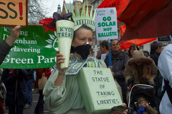 ![]() 'The Statue of Taking Liberties', Climate Change March, Lincolns Inn Fields, London, February 2005 |