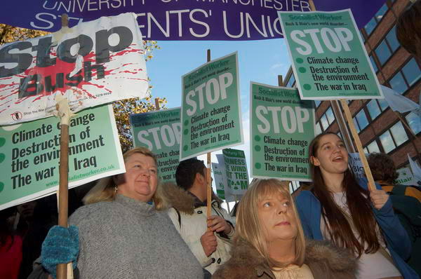 ![]() 'Stop Bush'. Kyoto Climate March, Lincolns Inn Fields, London, February 2005 |