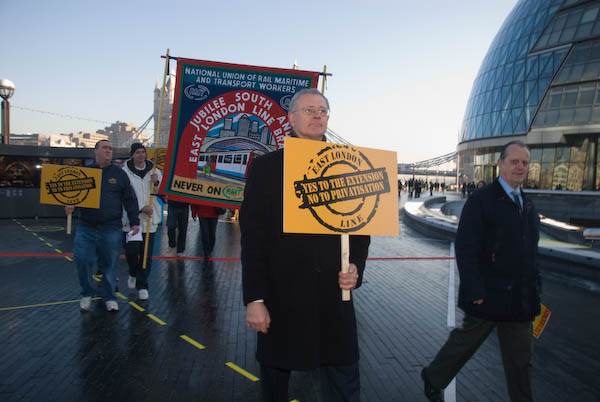 RMT Protests East London Line PrivatisationCity Hall, Southwark, London. Thursday 13 December