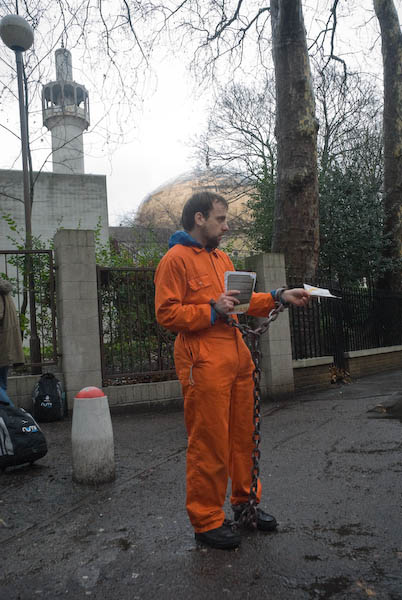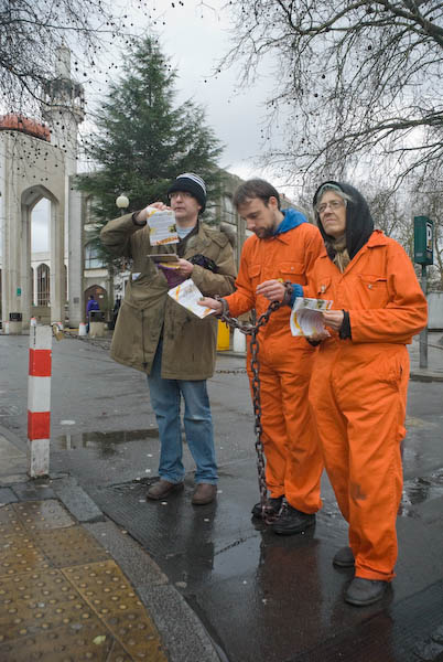Handing out leaflets in Park Road outside the Regents Park Mosque