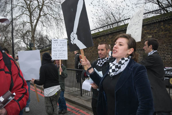 ![]() on writing placards and slogans to chant. They also had anti-FIT masks on offer. |