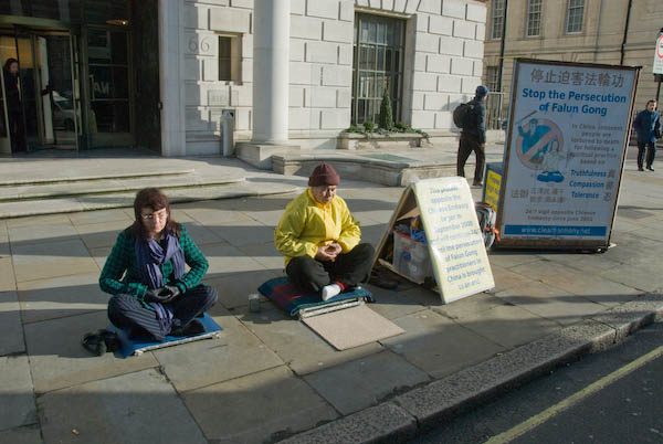 ![]() The continous demonstration opposite the Chinese embassy may have been kept up for even longer than Brian Haw's one man stand in Parliament Sq |