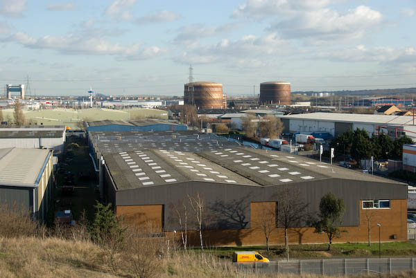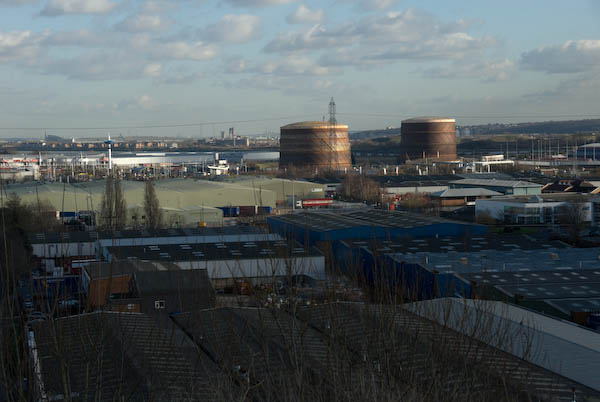 ![]() The River Thames is visible past the gas holders, still in use, but for distributing natural gas. |