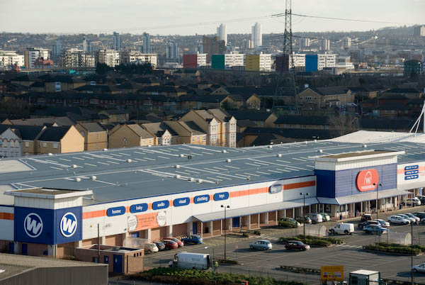 ![]() A larger view of the retail park, with East Beckton and the University of East London |