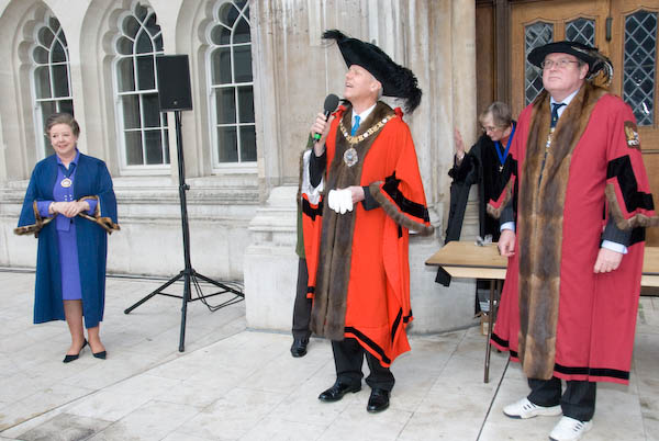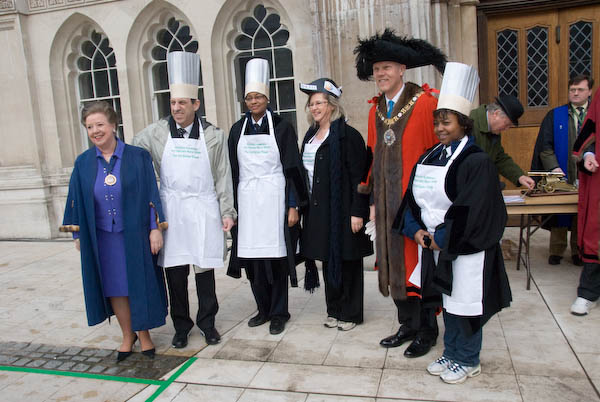 ![]() The Chief Commoner, Mansion House Pancake Race team and Lord Mayor pose. |