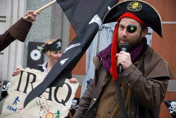 Hands off Iraqi Oil Piratical Action TourBond St-Shell Centre, London. Saturday 23 Feb, 2008