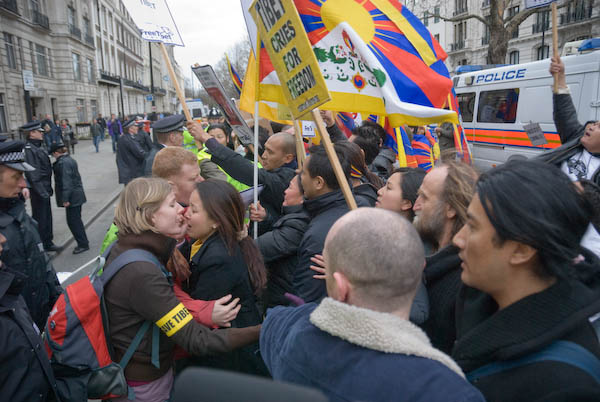 Tibet Vigil at Chinese EmbassyPortland Place, London. 17 March 2008