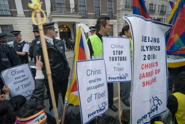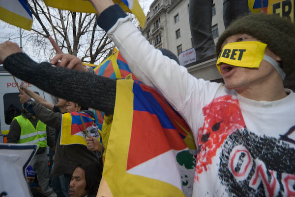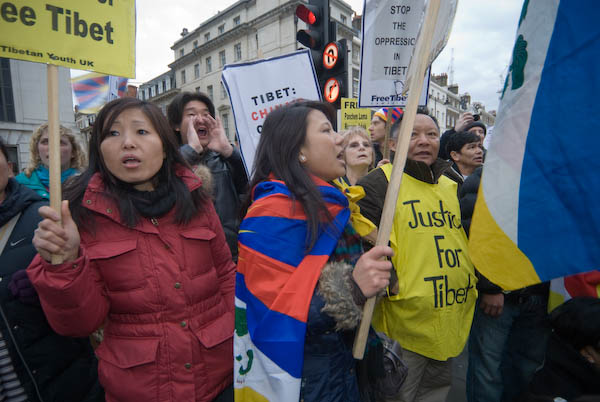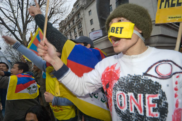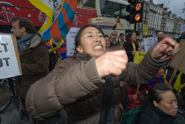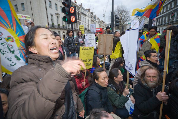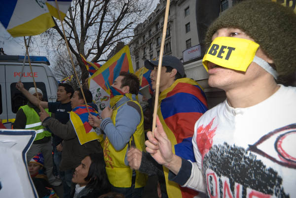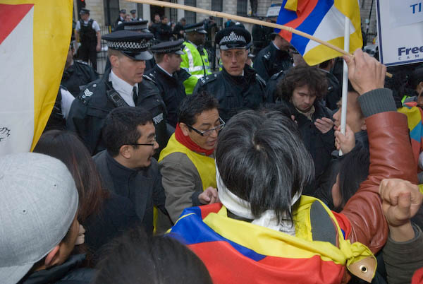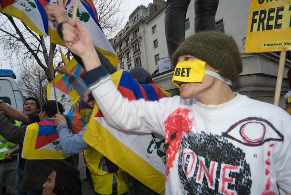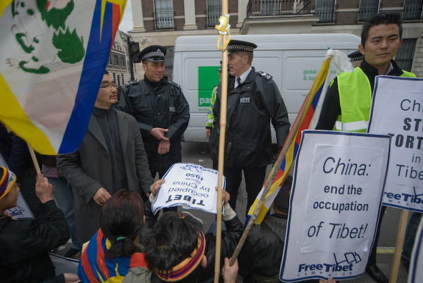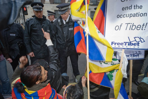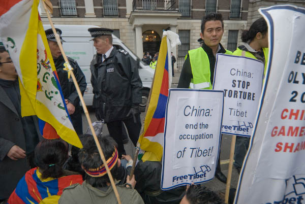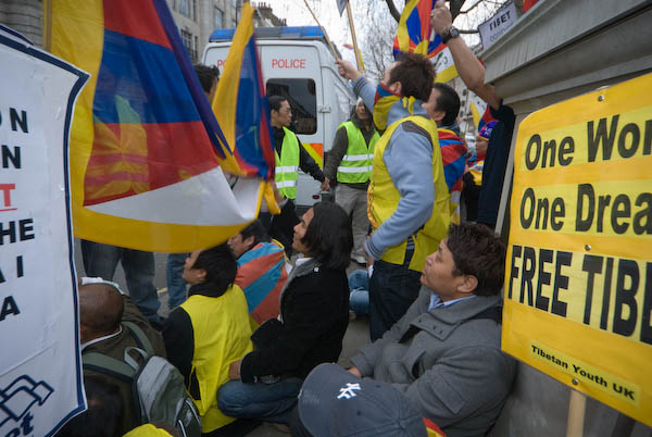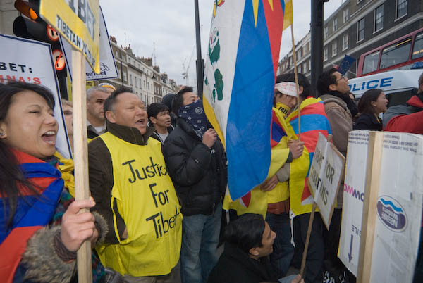 Tibet Vigil at Chinese EmbassyPortland Place, London. 17 March 2008![]() The protest continued from the central island |