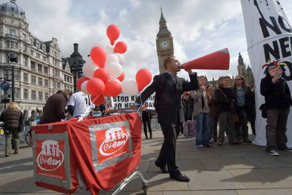 Fossil Fools Day: No New CoalParliament Square, Westminster, London. Tuesday 1 April, 2008