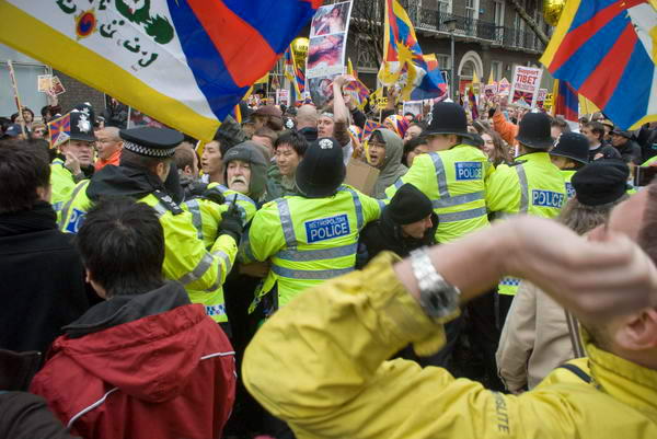 London Beijing Torch Relay Shames Olympic IdealsBloomsbury and Trafalgar Square, London. Sunday 6th April, 2008