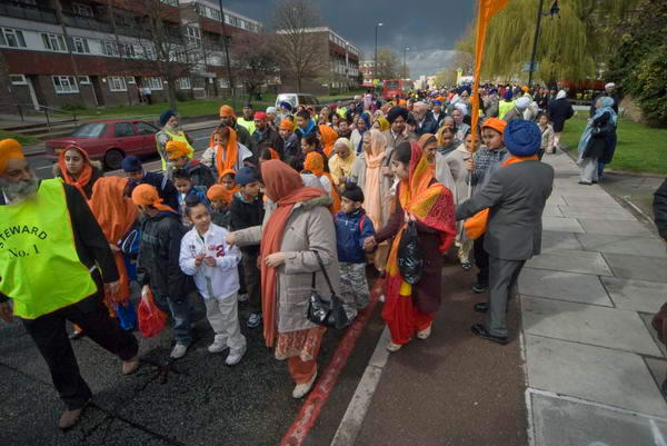 Woolwich VaisakhiWoolwich, London. Saturday April 12, 2008The people follow after the Guru Granth Sahib |