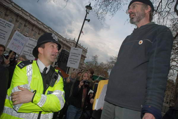 April Bio-Fools Day, LondonDowning St, London. Tuesday 15 April, 2008The police had refused permission for the demonstration