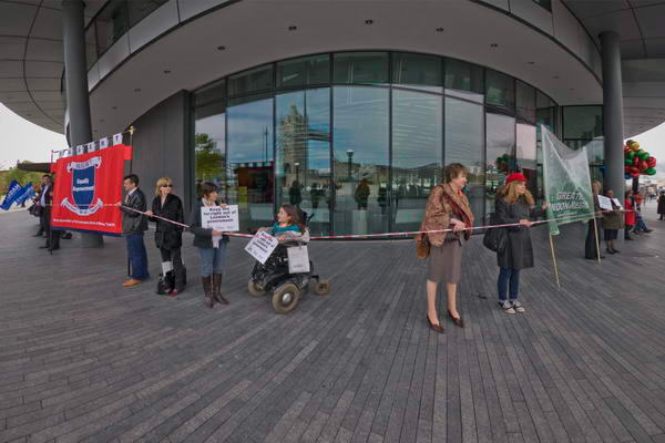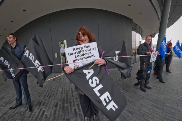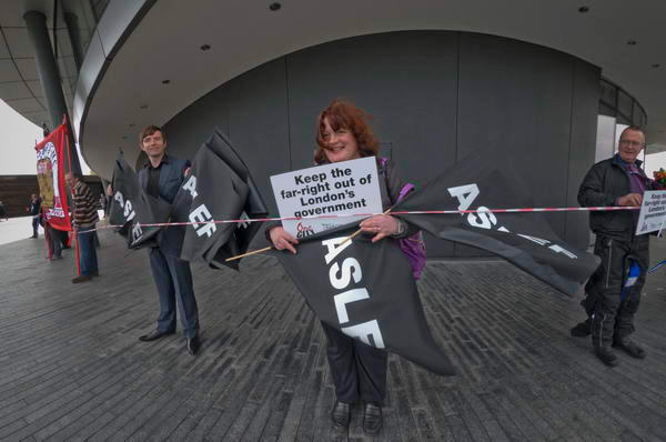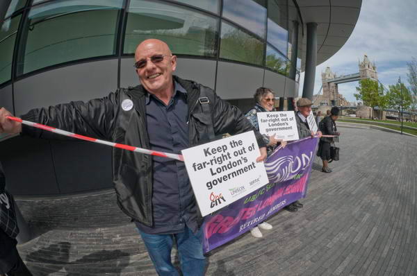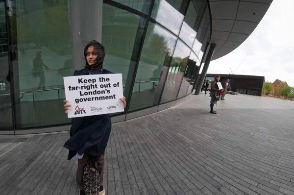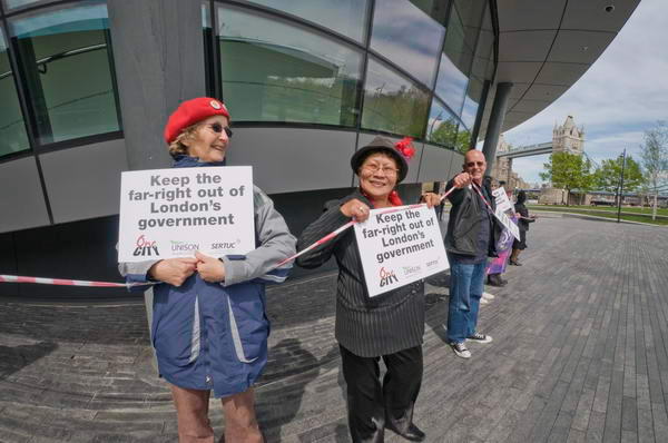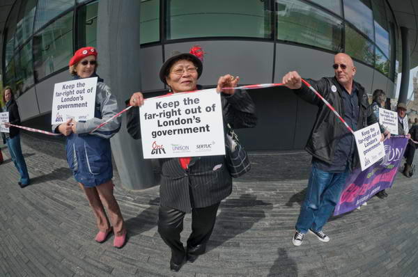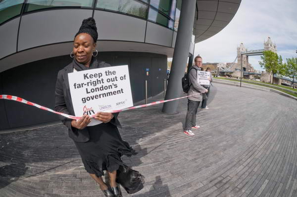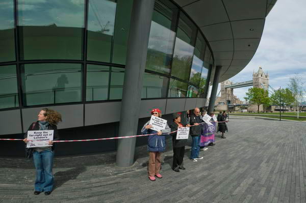 Keep the Far-Right Out of London GovernmentCity Hall, London. April 28, 2008Forming up in a ring around City Hall |