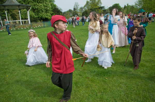 ![]() The London May Queen leads the procession away from the Recreation ground |