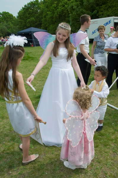 ![]() ![]() The Herald, the Fairy Queen and two small friends - and the event organiser make a minor adjustment |