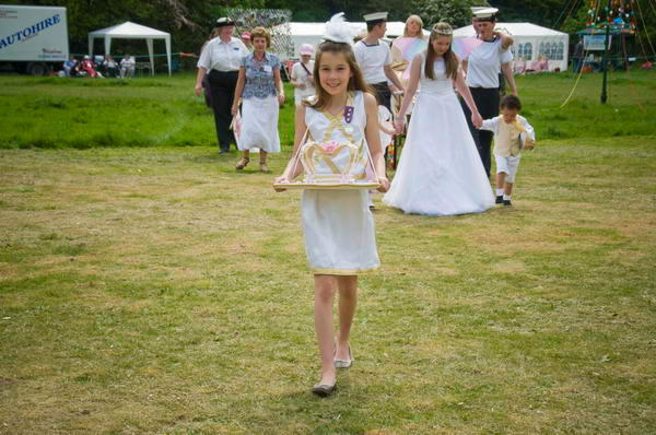 ![]() The May Queen is seated on her 'coach' , which looks as antique as the ceremony |