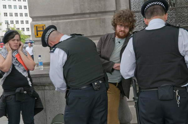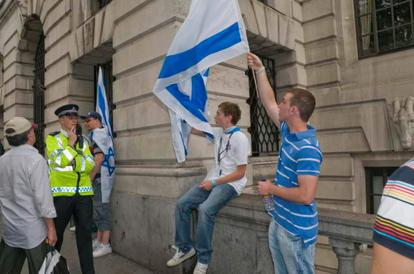 ![]() This policeman is about to tell the people with Israeli flags to stop being a nuisance and move away |