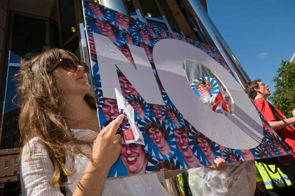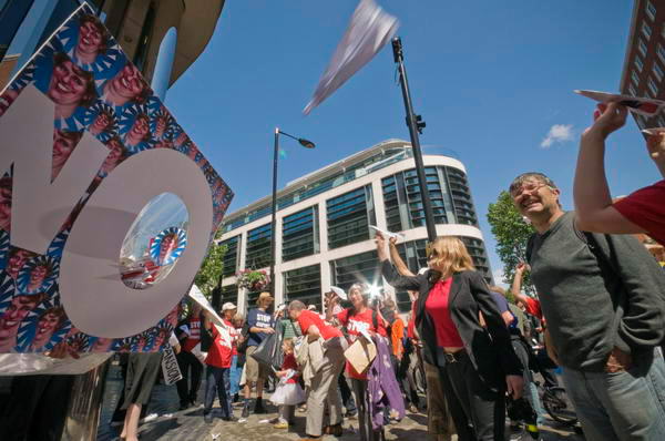 Stop Heathrow Airport Expansion Flashmob - DfTMarsham St, London. Thursday 3 July, 2008