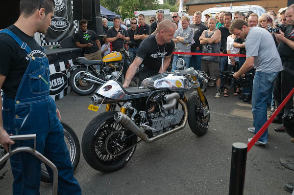 It was never my scene - if anything I was rather more of a mod and a Miles Davis fan, but I can't deny a certain thrill at the roar of Ace Cafe Racer 'Little Miss Dynamite', the latest Stonebridge special on display at the event, ridden in and then swung backwards and forwards at a camera rather like a bull facing the matador.