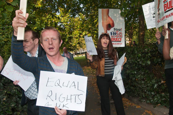The London Autistic Rights Movement demonstrated outside the US Embassy in London on Sunday 28 Sept pleading for hacker Gary Mckinnon to be tried in the UK or not at all rather than be extradited for trial in America.