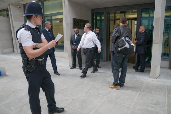 ![]() Both police and the security men took an interest in the leaflet being handed out |