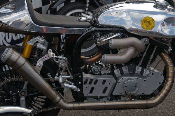 Little Miss Dynamite - a new Ace Cafe Racer - comes into the ring in the car park