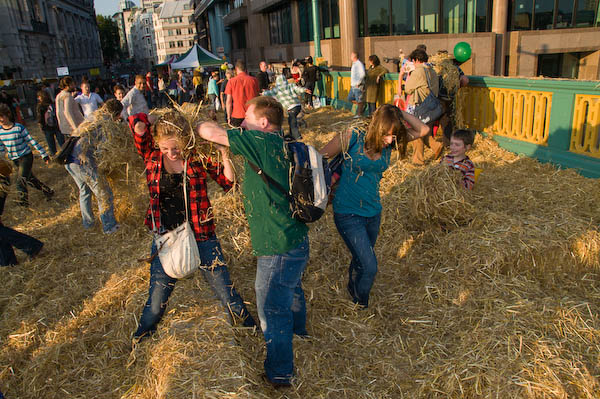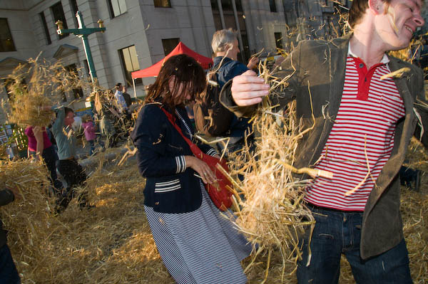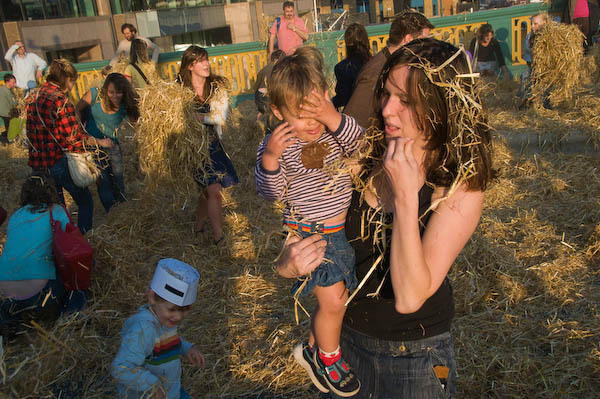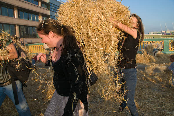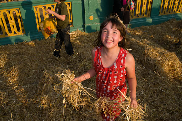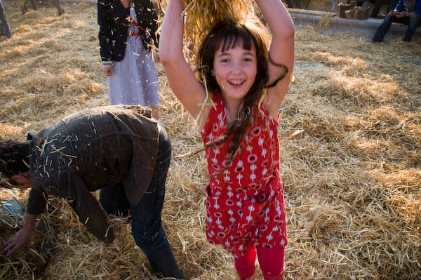 This young lady is heading for me with a large load of straw and a wicked gleam