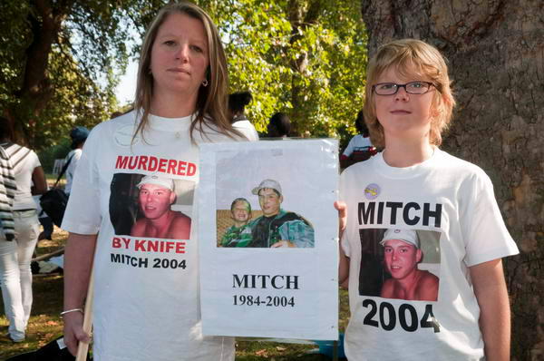 ![]() The mother and young brother Lennon of Mitch White, stabbed to death in Croydon in 2004, aged 20. |