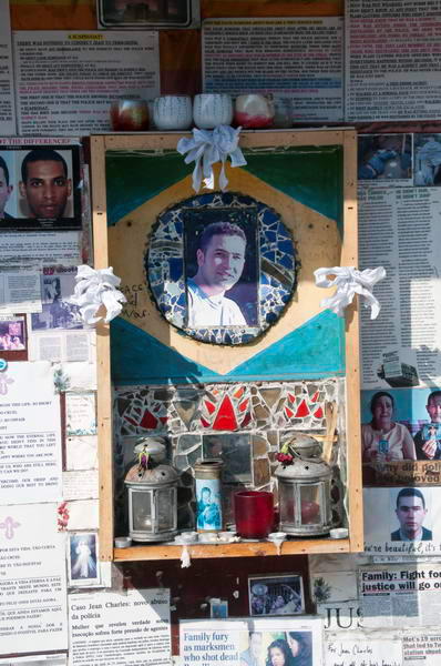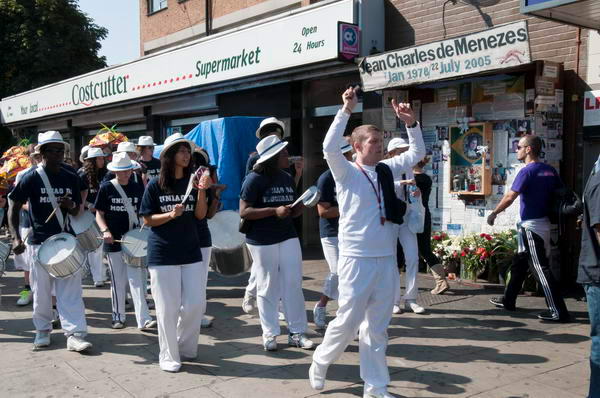 ![]() The parade passed the memorial to Jean Charles de Menezes at Stockwell Station |