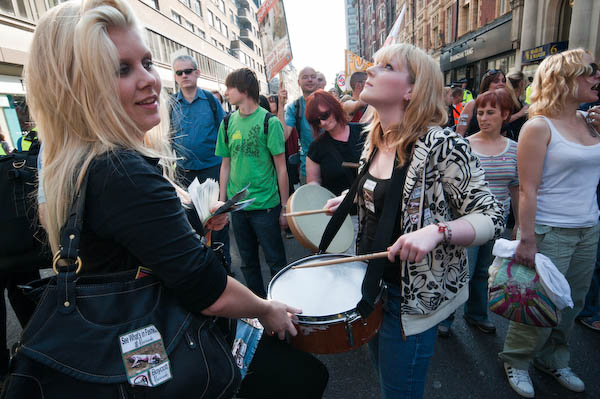 Drummers added to the noise of the demonstration - but a good street band would be a big help!