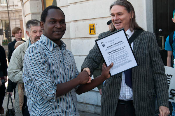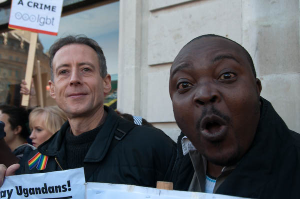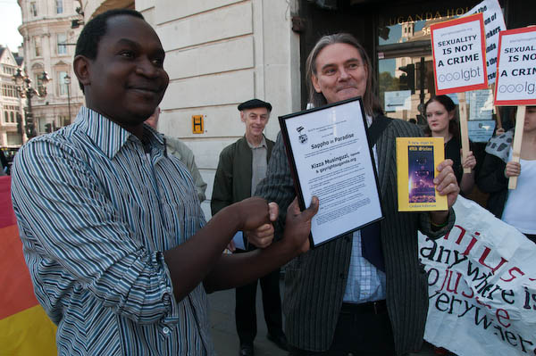 Demonstration Against Ugandan Human Rights AbuseTrafalgar Square, London. 9 October, 2008![]() Peter Tatchell of Outrage! and Davis Makyala of Changing Attitudes |