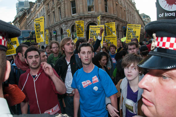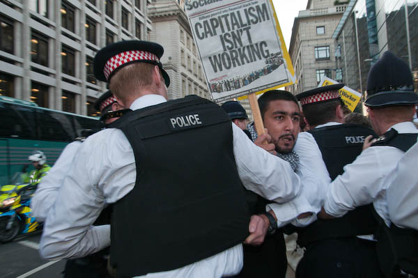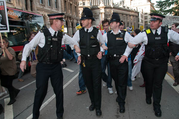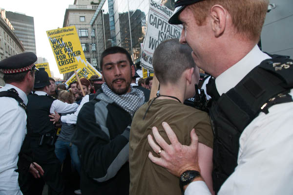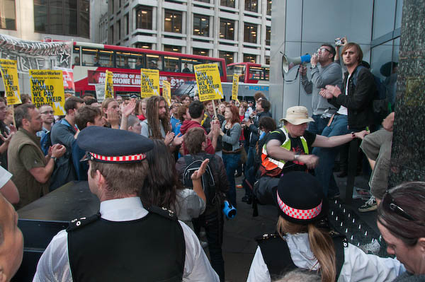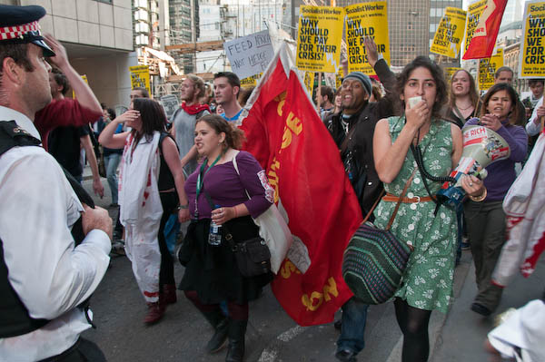 A wide area of pavement provides an opportunity for a final short rally before the march disperses peacefully