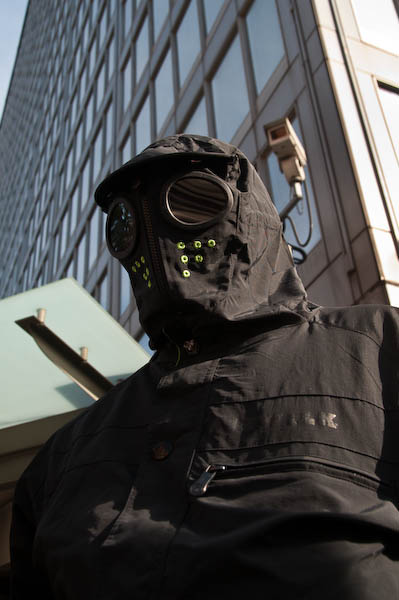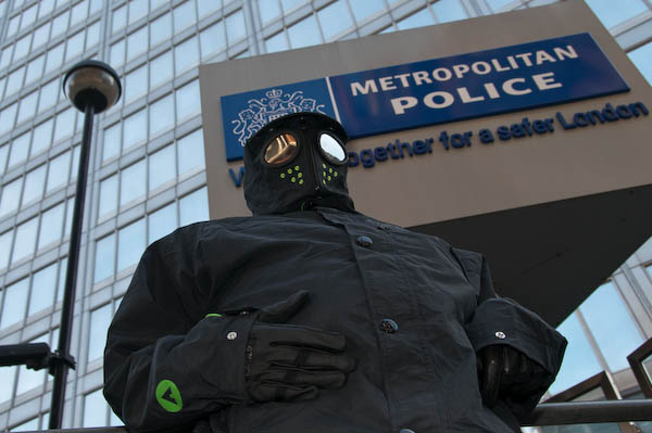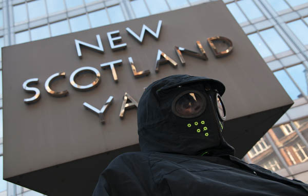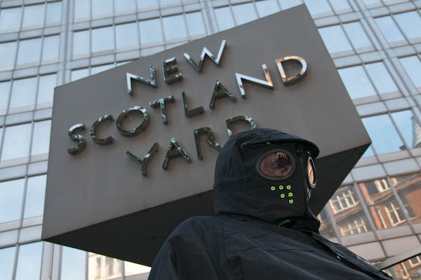 More from the Man (or Person) in Black - in front of New Scotland Yard sign