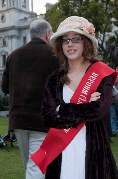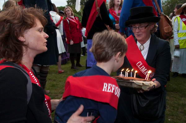 ![]() ![]() Some men also dressed the part Right: The buns say 'Deeds Not Words' and 'Climate Bill Now' and were rather sweet |