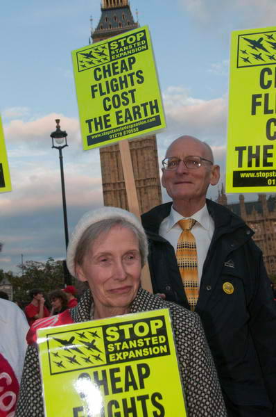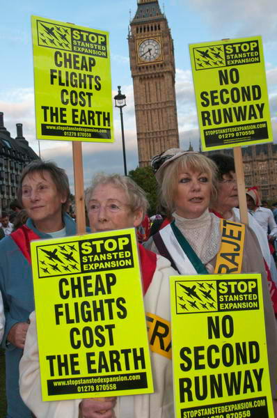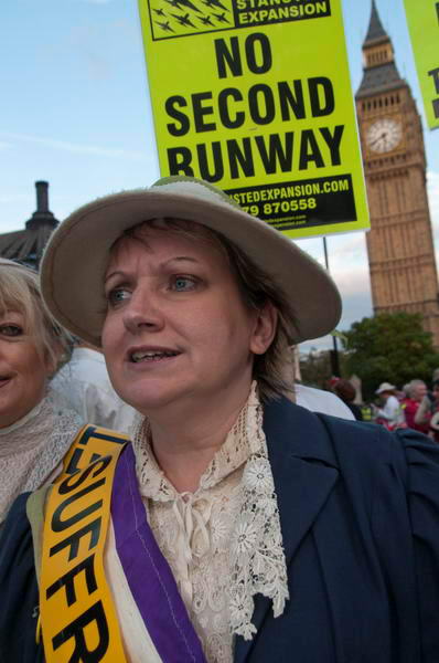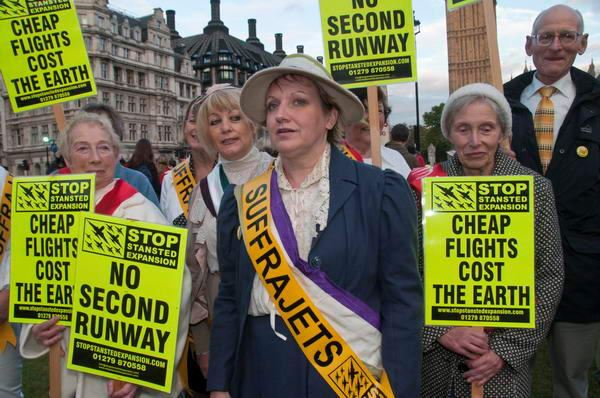 ![]() ![]() The campaigners against a second runway at Stansted wore 'Suffrajets' sashes |