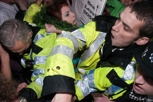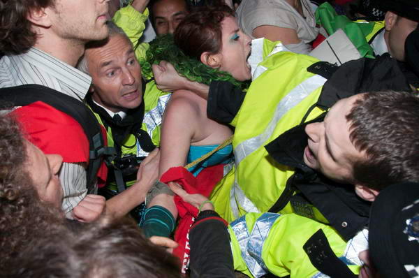 It was almost impossible for protesters to get out, and there seemed little point in some of the violent attempts by police to remove them when they were trapped by the press of bodies - and often being pushed in different directions by several officers.