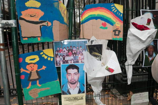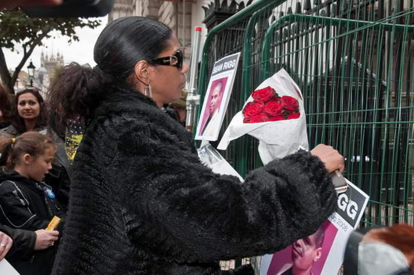 ![]() Coming to leave the bouquets at the gates to Downing Street |