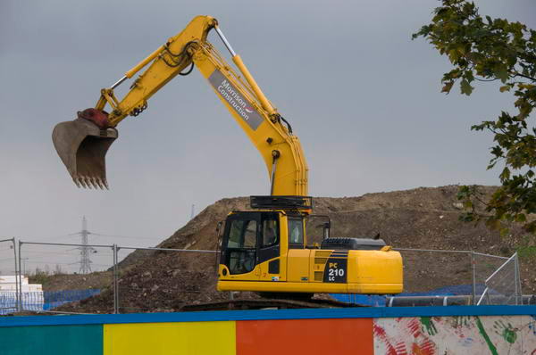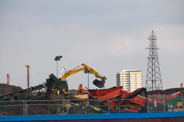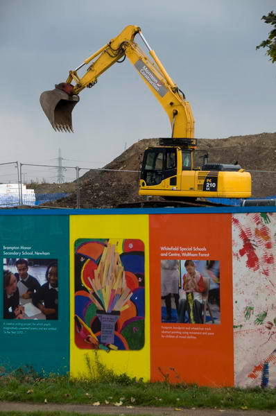 ![]() Terra-forming continues on the Olympic site behind the blue fence |