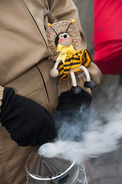 ![]() ![]() Bee-keepers use burning wood shavings or corrugated cardboard in the smoker to calm the hives so the bee-keeper can work with them |