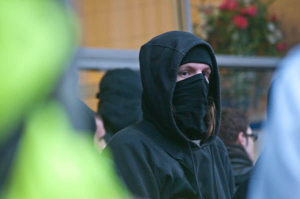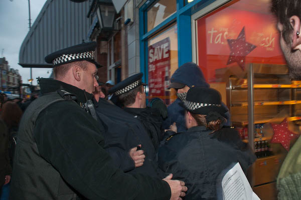 ![]() But the police are soon in control and form a "kettle" around a group of perhaps 50-60 demonstrtors in front of the station |