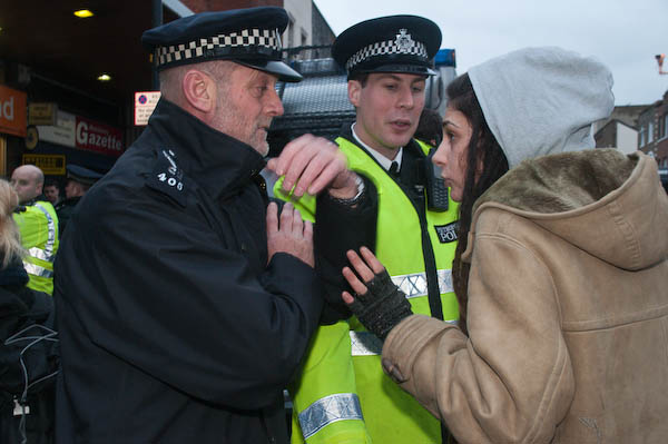 ![]() One of the police moves slightly, giving me a view into the kettle |