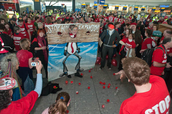 No Third Runway Decision Day FlashmobTerminal 5, Heathrow Airport, London. Saturday 17 Jan, 2009