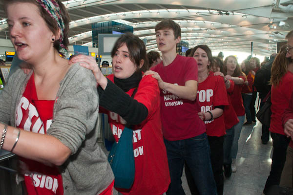 No Third Runway Decision Day FlashmobTerminal 5, Heathrow Airport, London. Saturday 17 Jan, 2009