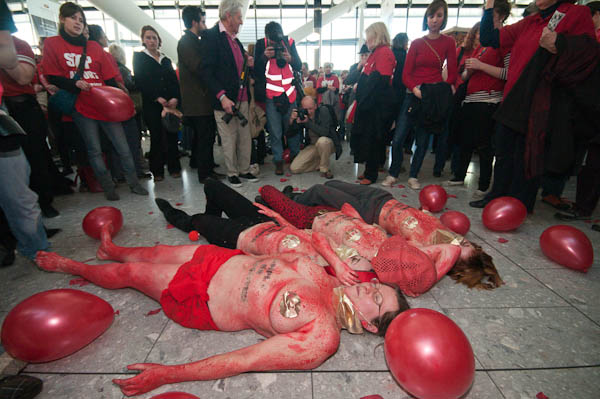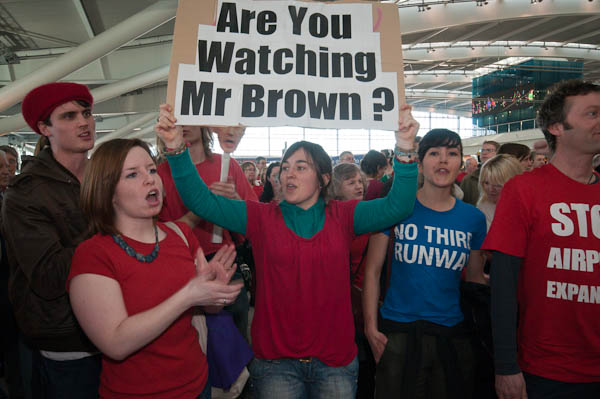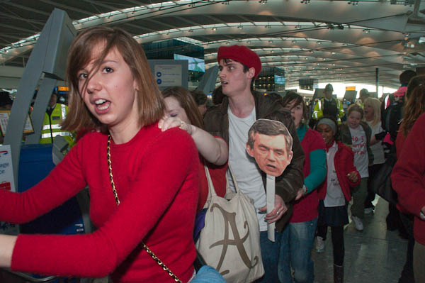 No Third Runway Decision Day FlashmobTerminal 5, Heathrow Airport, London. Saturday 17 Jan, 2009