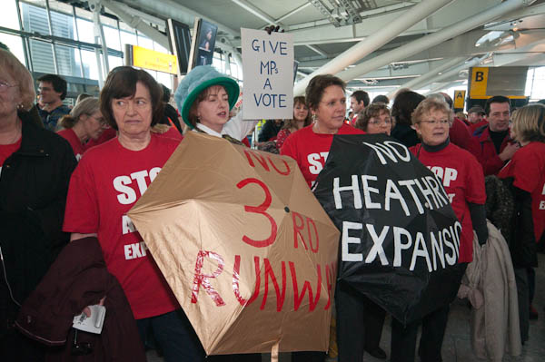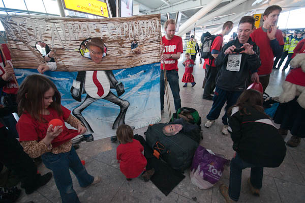No Third Runway Decision Day FlashmobTerminal 5, Heathrow Airport, London. Saturday 17 Jan, 2009