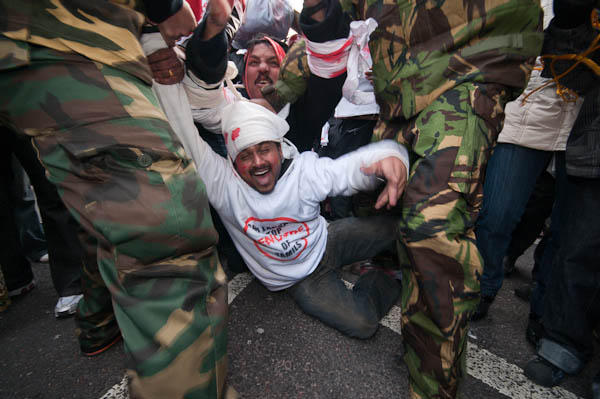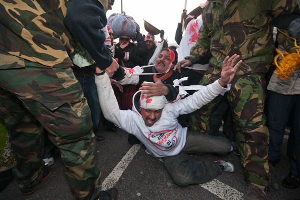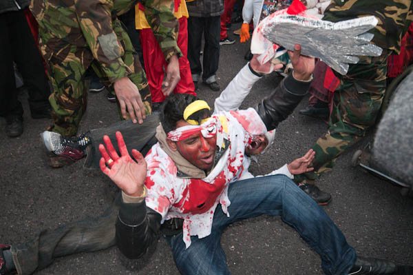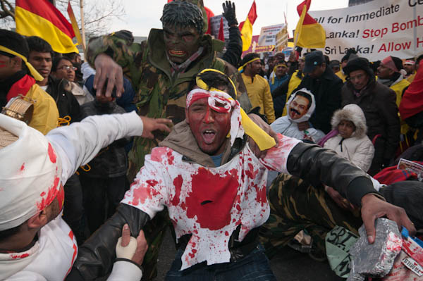 ![]() Several men, one with an Elvis mask, represented the Sri Lankan and Indian armies, and attacked the people |