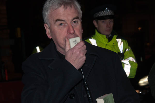 John McDonnell speaking opposite Downing St - Phil Thornhill listens at left