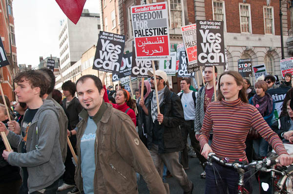 Jobs not BombsUS Embassy and Trafalgar Square, London. Wed 1 April, 2009