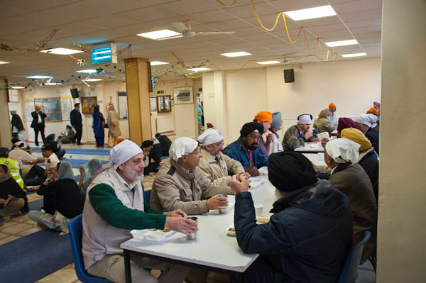 Taking a meal in the Langar before the processions - the free distribution of food is an expression of Deg