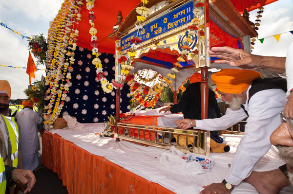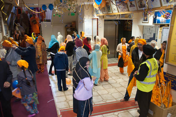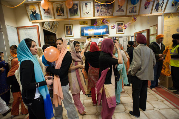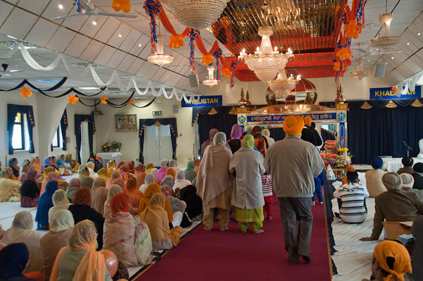 People were waiting outside for the Guru Granth Sahib to be brought out - and I went inside to see this